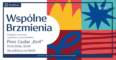 Zapraszamy na wyjątkowe spotkanie z dźwiękiem i historią w ramach cyklu Wspólne Brzmienia. Tego wieczoru usłyszymy autorską muzykę Piotra Gudara Króla – krakowskiego multiinstrumentalisty, który tworzy koncerty na handpanach (to te hipnotyzujące, „kosmiczne” bębny), jednocześnie grając na instrumentach perkusyjnych takich jak djembe czy cajon. Na scenie pojawiają się też shakery, talerze perkusyjne, a nawet gong.
